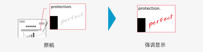 扫描时可检测打印文档上的手写文字或线条,并以指定颜色突出显示。